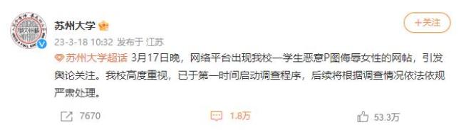 网帖迅速引发社会关注。3月18日,苏州大学回应,已启动调查程序,后续将根据调查情况依法依规严肃处理。
