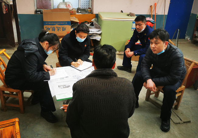 何娅茜(左二)对一起放火案的案发原因开展走访和社会调查。