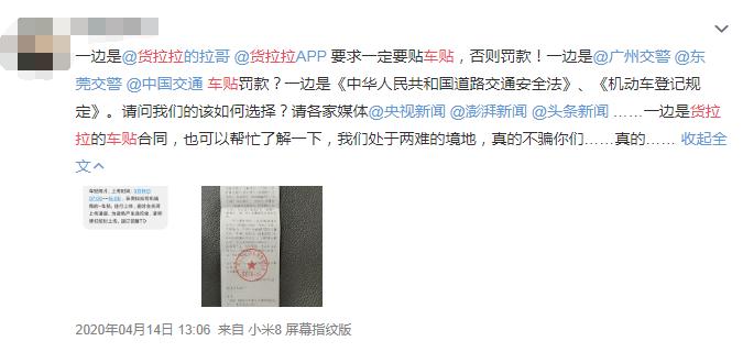 最近,一些货拉拉司机陷入两难:货拉拉提供的车贴,不贴公司罚,贴了交警罚!