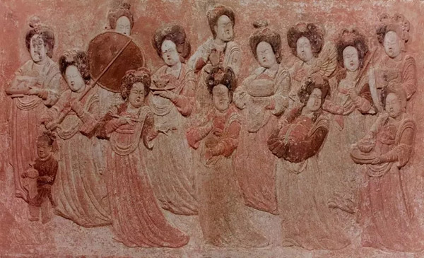 ▲ 五代彩绘奉侍图浮雕 1994年河北保定曲阳王处直墓出土(图片来源网络)