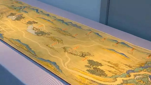 2017年11月,故宫博物院获捐一幅极具珍贵历史价值的文物——《丝路山水地图》。该文物绘于绢本之上,是一幅绘制于明代中后期的青绿山水手卷,描绘了东起嘉峪关西至天方城(今沙特阿拉伯的麦加)的辽阔地域范围。