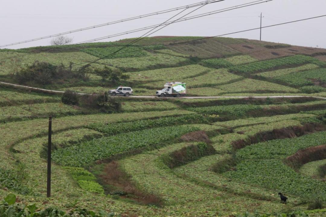 △巡回审判车走在田间路上