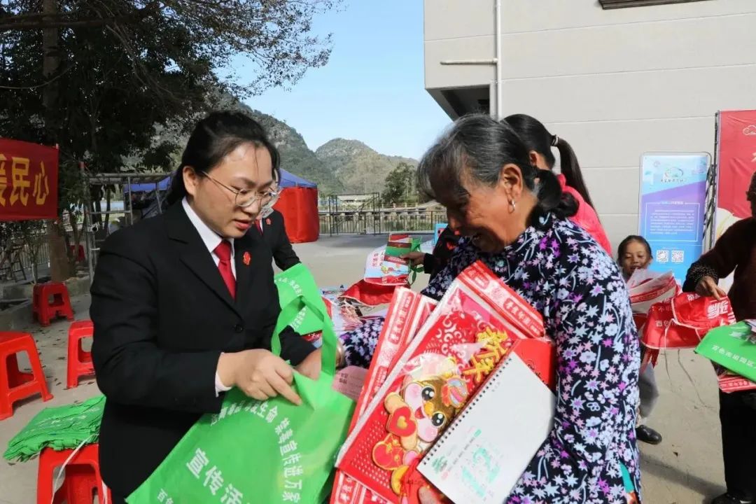 新春佳节将至,百色市田阳区人民法院充分抓住节前关键时机,不断创新普法宣传方式,拓展普法宣传内容,营造节日期间和谐稳定的社会氛围。2月1日,田阳区法院组织干警深入田阳区坡洪镇新建村,开展法治宣传服务活动,为辖区群众送上既有温度又有深度的新春“法治年货”。