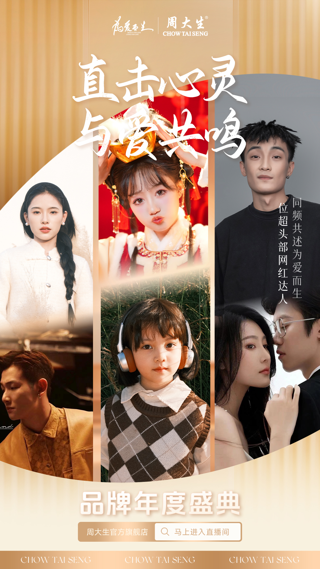 每次年度盛典,都是一场爱的狂欢!去年是游历世界地图的【超时空奇遇】,今年刚开年,周大生又为我们带来了一场【为爱而生】的内容盛宴。本次在珠宝圈、营销圈、粉丝圈,甚至文娱圈都掀起大片波澜的周大生品牌年度盛典,借任嘉伦直播及八位头部网红达人为载体,深度解读周大生为爱而生的品牌理念,以优质内容撬动大众视线,引发关于爱的共鸣,并成功在三大直播平台实现品销效的高度协同。