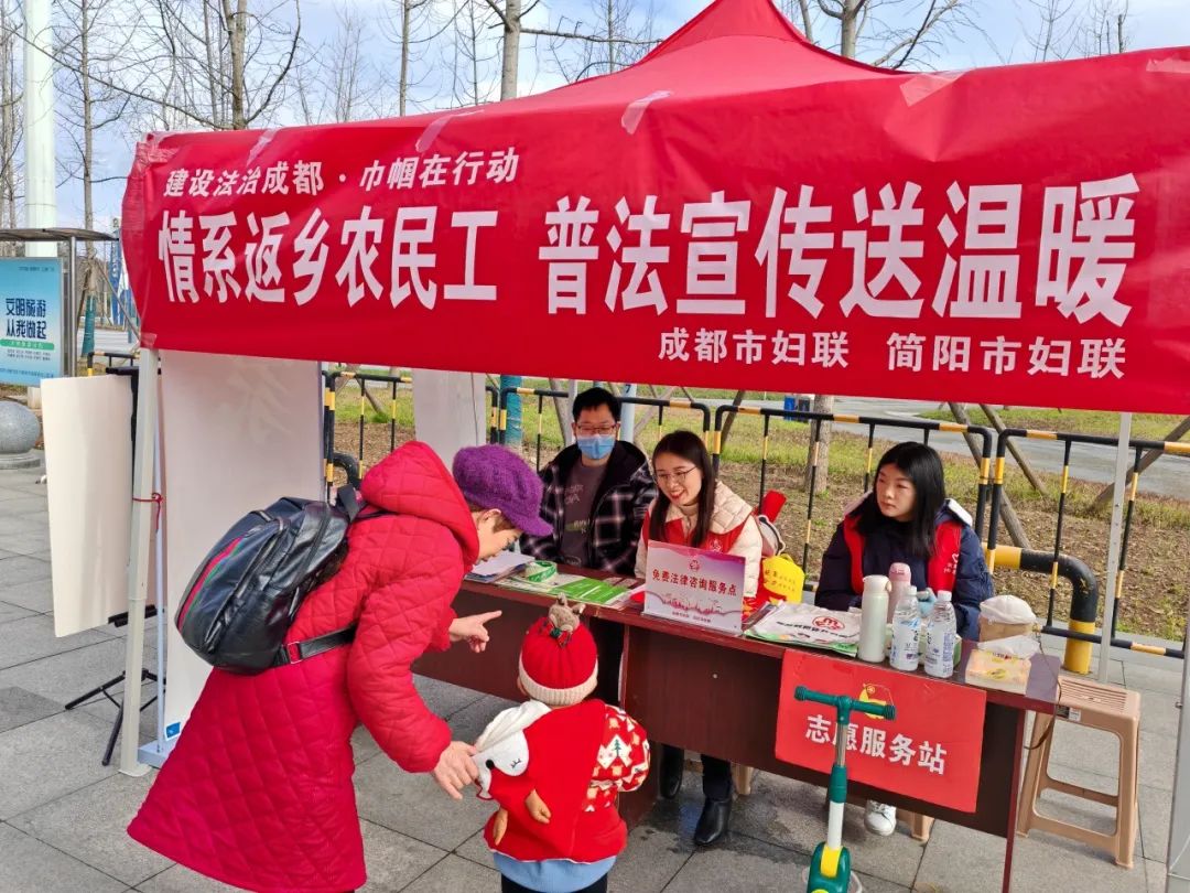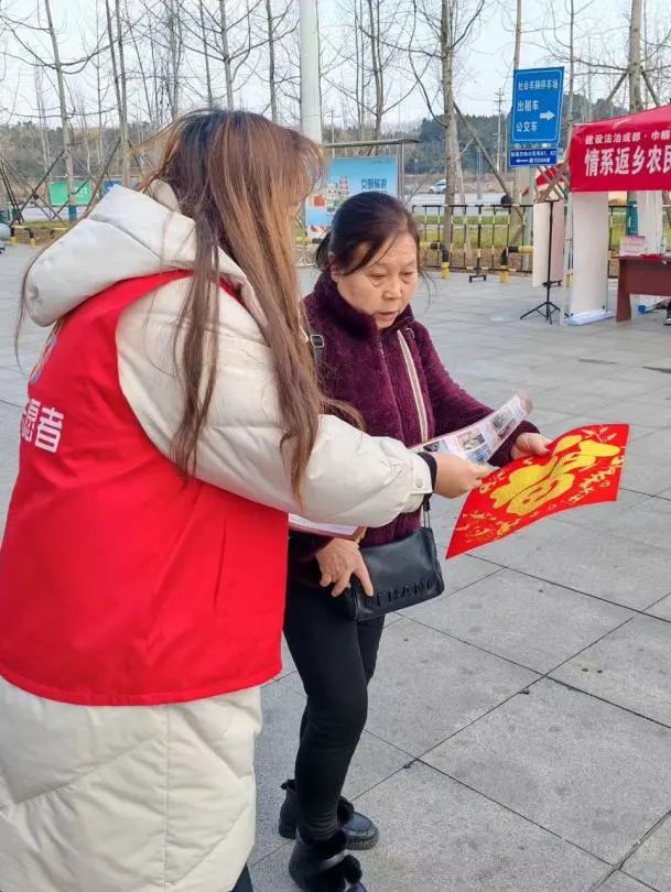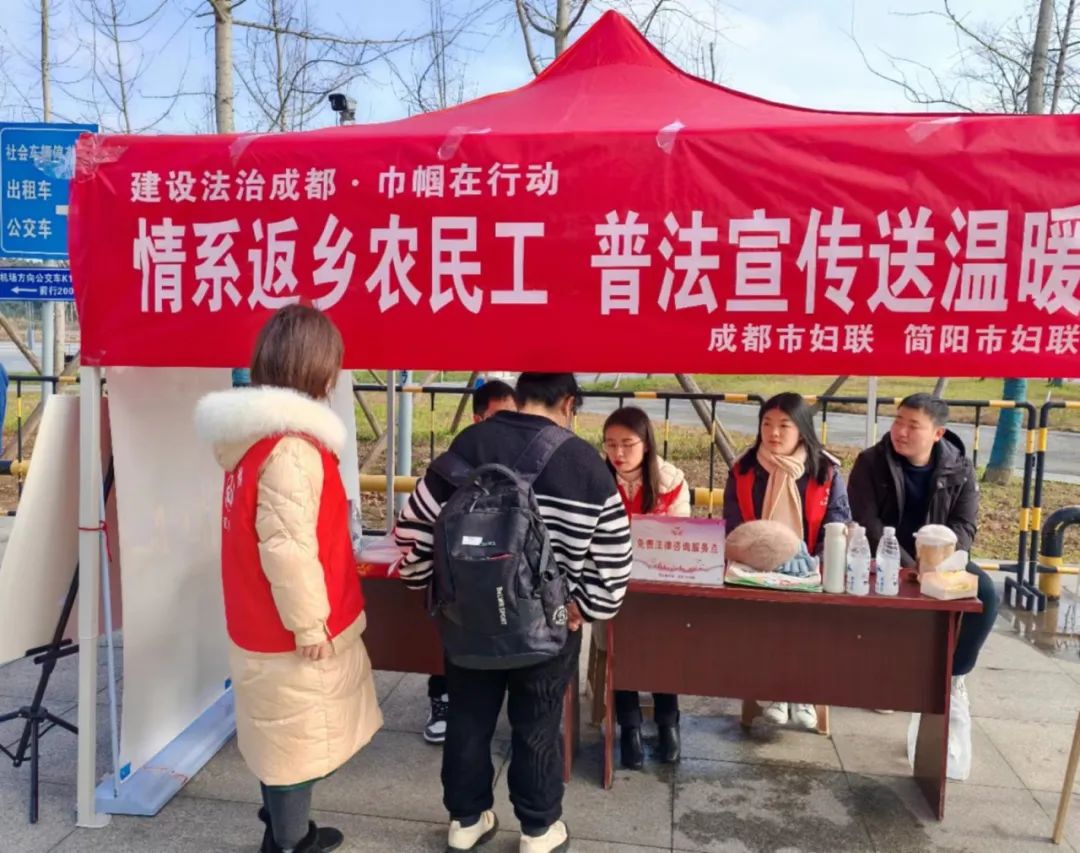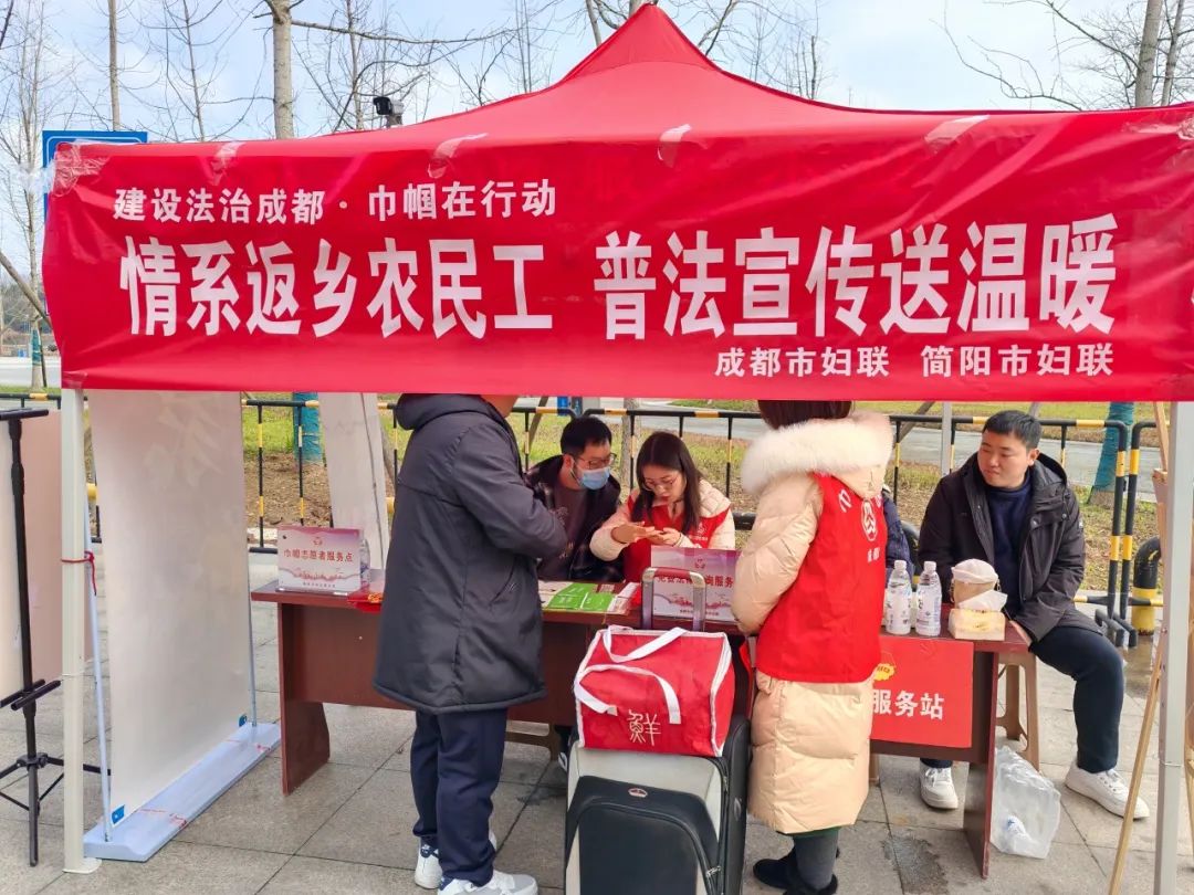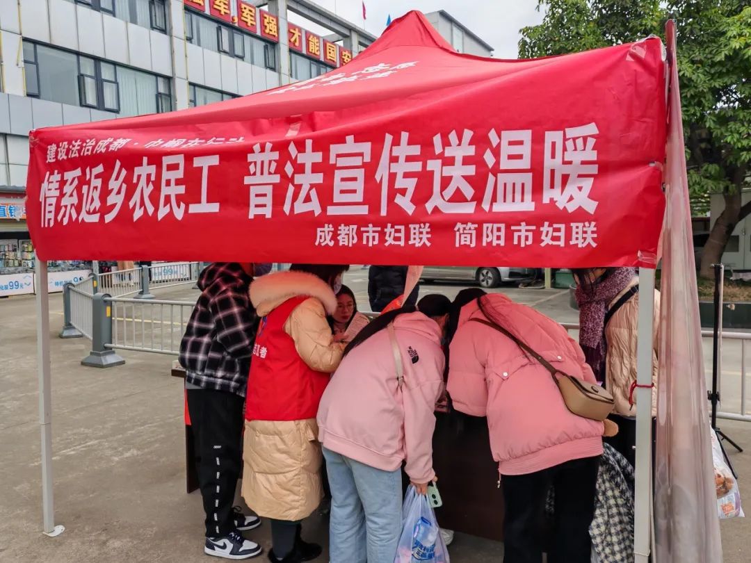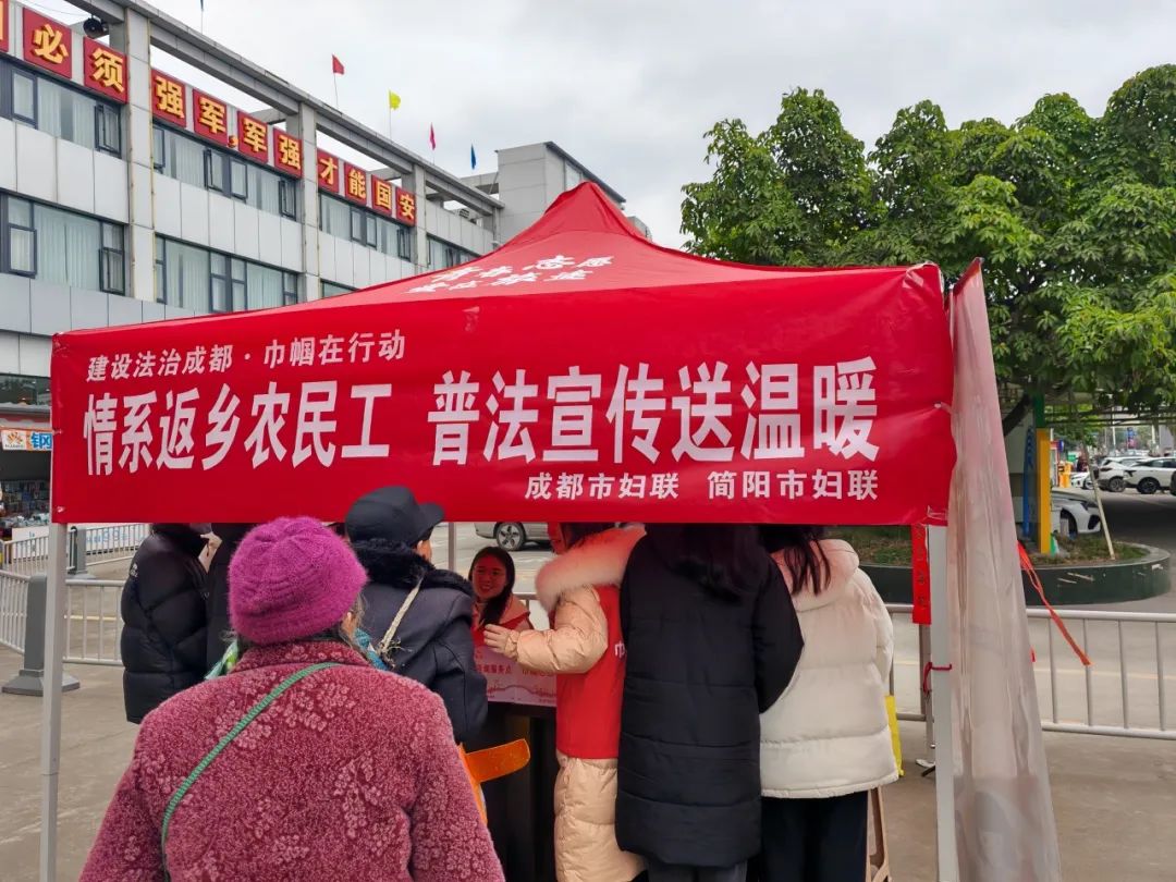 在传统新春佳节即将来临之际,为进一步增强农民工法律维权意识,提升广大妇女儿童及家庭的法治素养,2月4日,简阳市妇联在简阳市高铁南站和城东客运站开展了服务农民工普法宣传活动。