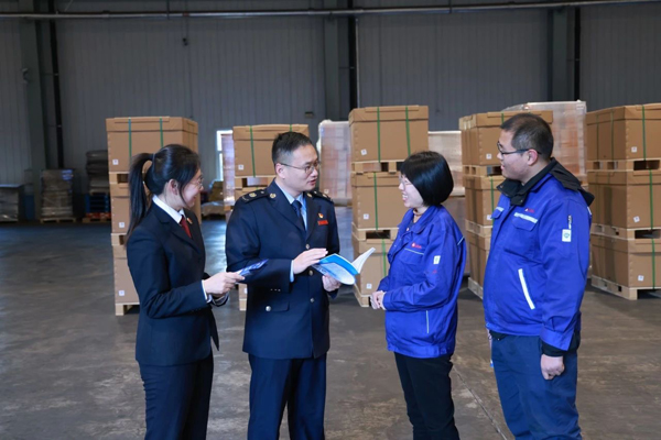 国家税务总局莱州市税务局与莱州市人民检察院联合开展宪法宣传进企业活动,共同为企业送上法律法规和税费政策大礼包。(图文/叶天博)