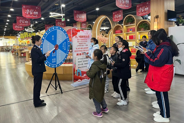 国家税务总局东平县税务局在新华书店举行“宪法大转盘”趣味普法活动,通过“宪”身说“法”,寓学于乐,将宪法理念潜移默化地送到孩子们心中,让宪法宣传更加生动、更加深入人心。(图/马庆帅 文/王圆)
