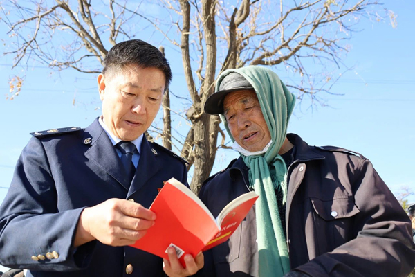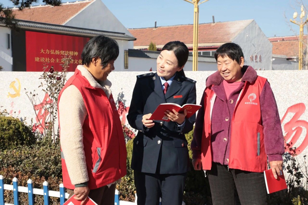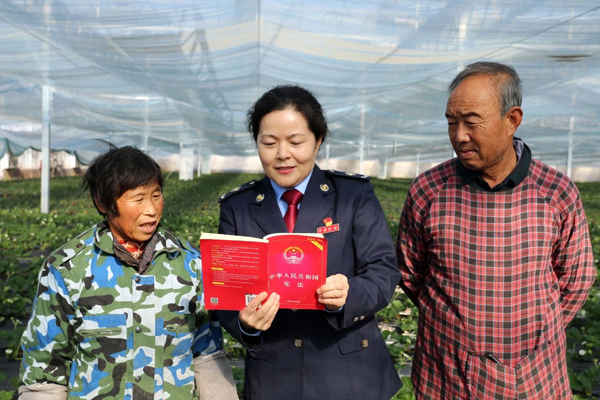 国家税务总局阳信县税务局“宪法宣传小队”来到市派“第一书记”帮扶村,向村民发放宪法宣传读本,用通俗易懂的语言向群众宣讲宪法知识,并对村民近期关心的城乡居民养老保险和医疗保险等相关政策进行耐心解答,不断提升村民的法治意识。(图文/卢心雨)