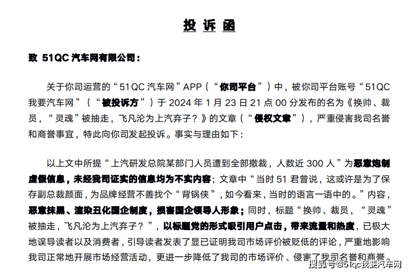看来飞凡汽车相关舆情部门是认真阅读了此前51君发布的关于近期飞凡汽车人事变动的撰文,随后又精心准备了这么一篇《投诉函》。