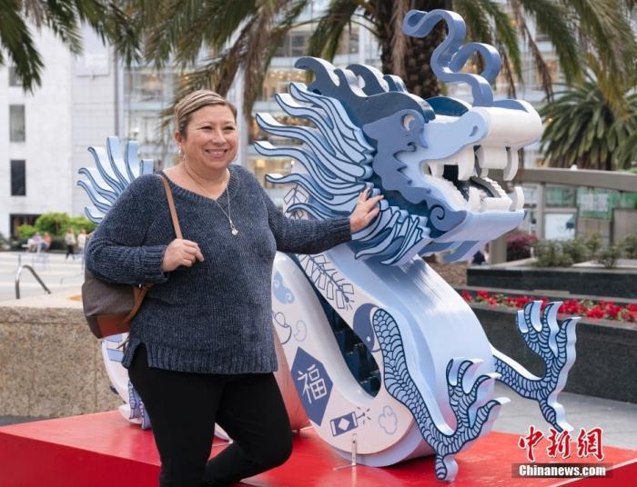 为了迎接中国农历龙年,美国旧金山在不同地点展出设计风格各异的龙雕像,包括“青花瓷龙”“天玉龙”“平安龙”“彩虹龙”和“金运龙”。美国邮政还发行了龙年生肖纪念邮票,金色象征繁荣,红色代表好运。