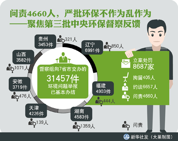 【环境保护】第三批中央环保督察问责4660人 严批环保不作为乱作为