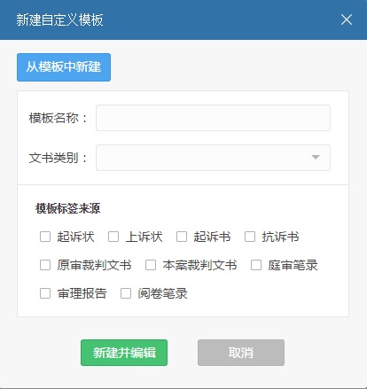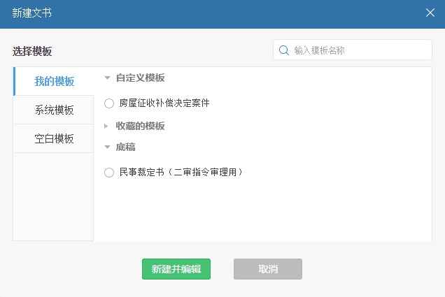 选择“我的模板”“系统模板”或“空白模板”,点击新建并编辑,即可创建文书初稿。