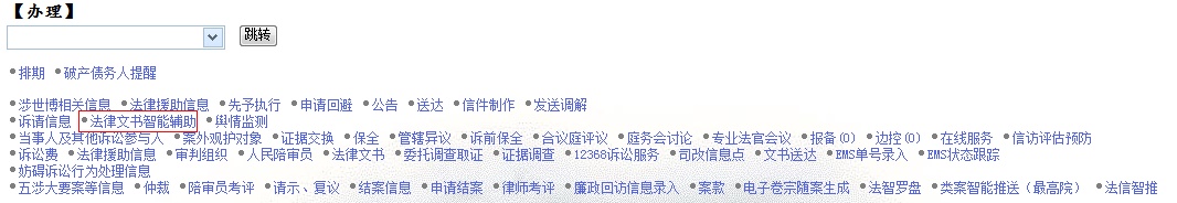 进入审判管理系统,打开待处理案件办理页面,点击“法律文书智能辅助”,进入“法律文书智能辅助”系统。