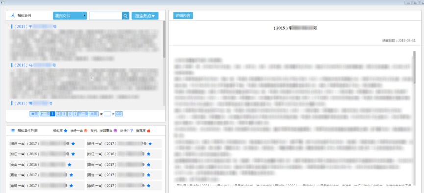 打开政务外网端“案件详情”页面,点击“类案推送”按钮,就可以向法官推送相似案件,为其办案提供参考。
