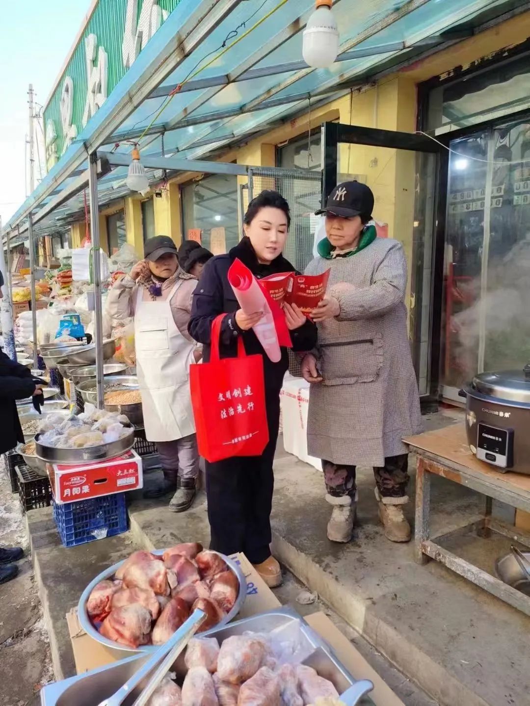 新邱区司法局联合司法所走进七家子村农贸集市开展法治宣传活动,走进村民家中发放法治宣传资料、法治春联。