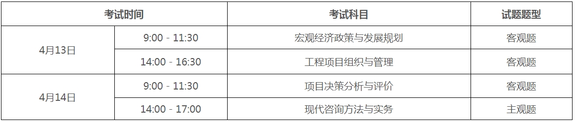 (二)凡符合上述考试报考条件,并具备下列条件之一者,可免试《宏观经济政策与发展规划》《工程项目组织与管理》科目,只参加《项目决策分析与评价》《现代咨询方法与实务》2个科目的考试。
