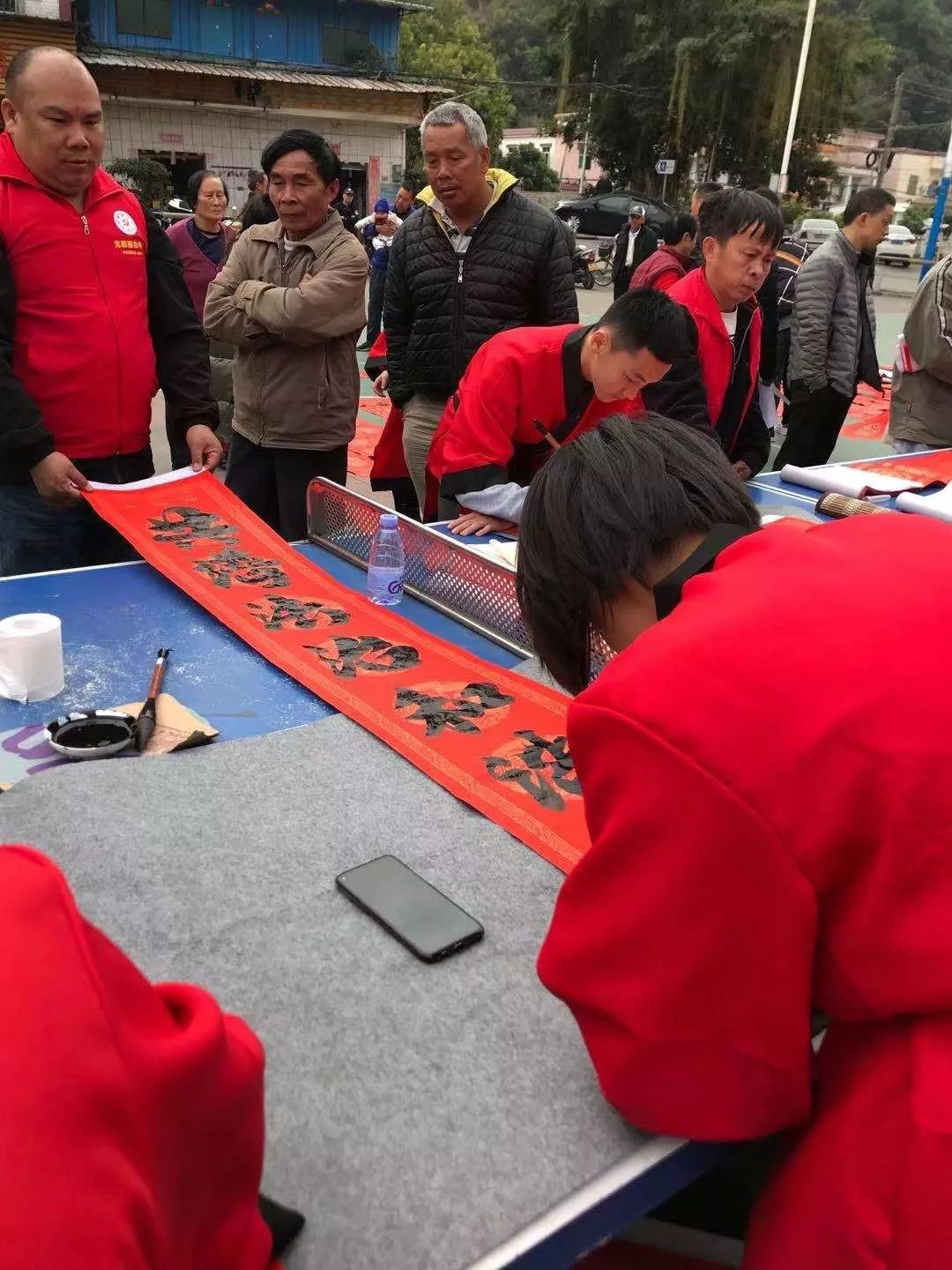 “治国依法民心顺,理事照章社会安”“法若清风梳万物,德如化雨润千家”“治国依法民心顺,理事照章社会安”“尊法学法兴正气,守法用法建和谐”等一幅幅内容新颖、寓意美好的法治春联被书法爱好者书写出来,居民纷纷赶来现场排队等候,互相谈论着各副春联的寓意,有的根据新年心愿从准备好的春联中精心挑选,有的期望书法爱好者为其精心定制现场创作,更有懂书法的群众兴致勃勃提起墨笔,加入到了写春联的行列。
