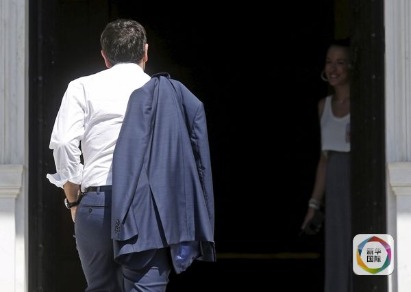 疲惫、无奈的希腊总理齐普拉斯回到雅典总理府。(图片来源:新华/路透)