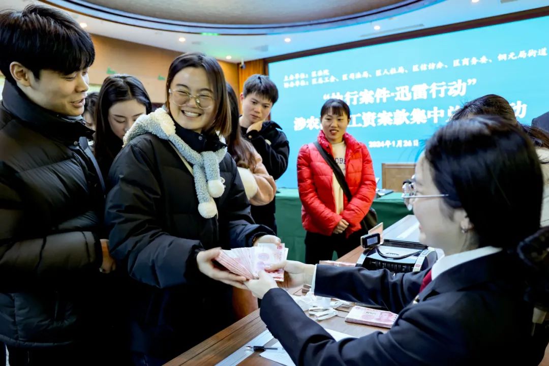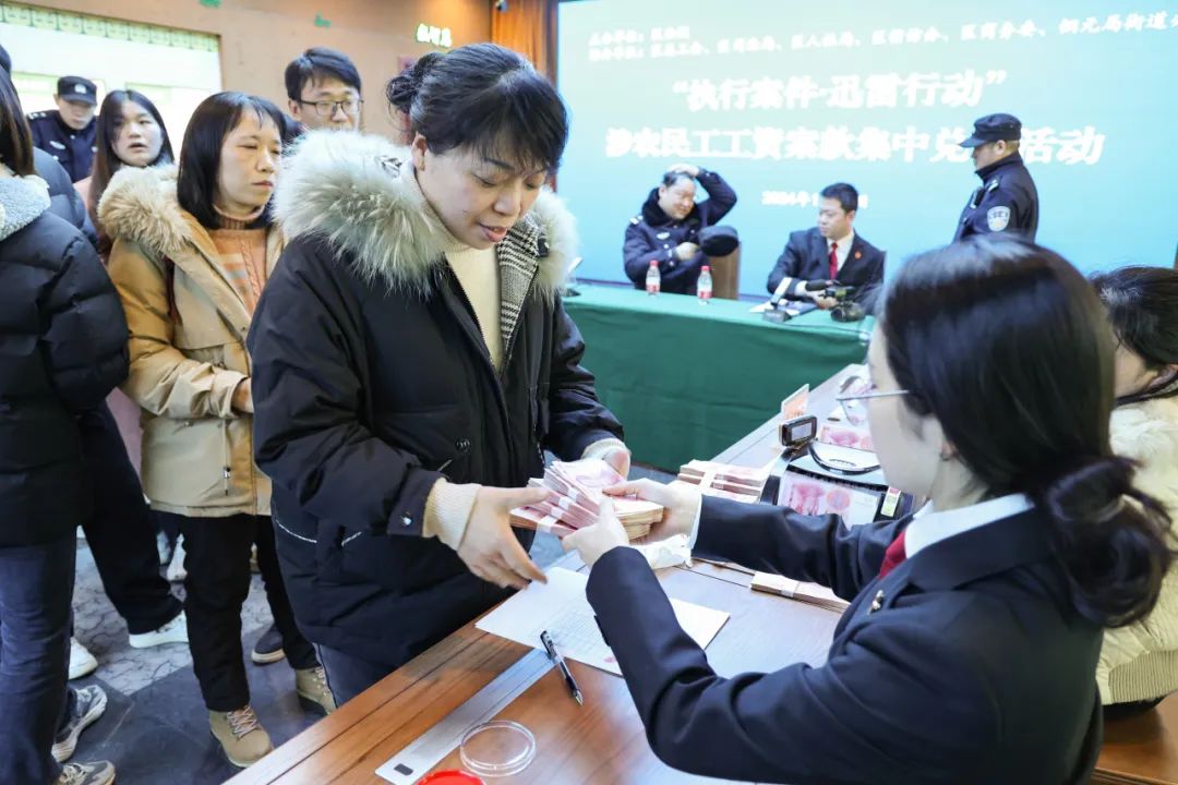 “到账了,到账了!可以安心过年了!”近日,重庆市南岸区人民法院“执行案件·迅雷行动”涉农民工工资案款集中兑付活动现场人头攒动、气氛热烈,39名劳动者通过现金、转账等方式拿到了共计148万元的经济补偿金,脸上难掩笑容。