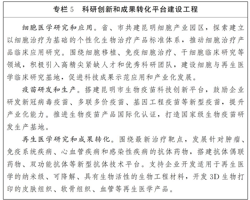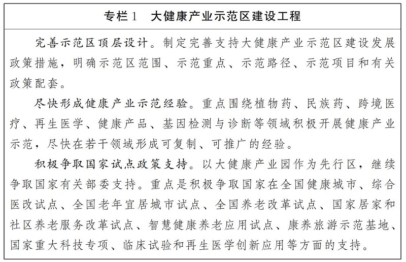 促进健康服务业与生物医药等产业高质量联动发展,推进疫苗、基因、干细胞、精准医疗、再生医学、3D生物打印等前沿生命科学领域研究,开展健康科技研究成果临床转化和应用创新,促进大健康领域国内外合作交流,建设国家级转化医学基地,形成以生命健康产业研发和服务为引领的千亿级大健康产业创新引擎。