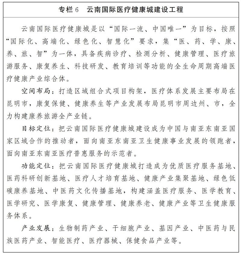 (一)打造立足云南、面向南亚东南亚的医疗健康服务辐射中心