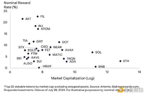 [9] 来源:Allium,Grayscale Investments。截至 2024 年 7 月 28 日的数据。自 2023 年 1 月 1 日以来的年化质押回报率的简单平均值。
