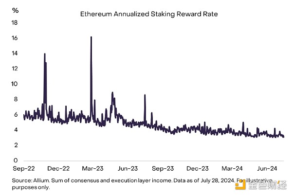 图 4:以太坊质押者目前的年化回报率约为 3%