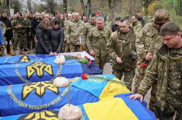 乌克兰国民警卫队成员参加在首都基辅战斗中丧生的战友的葬礼(路透社)