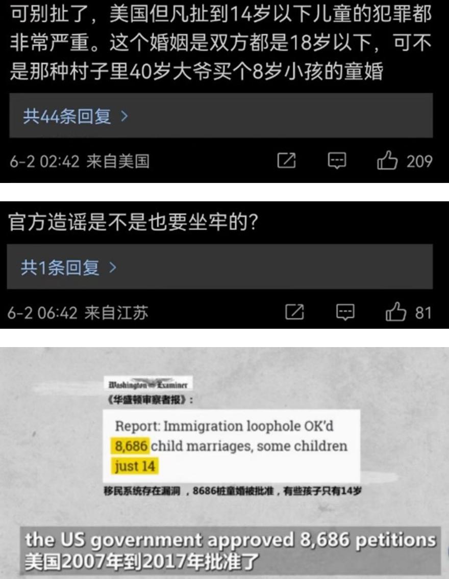 在文章开头所提及的这条视频发布后,很多读者对视频中所说的美国童婚现象表示怀疑。