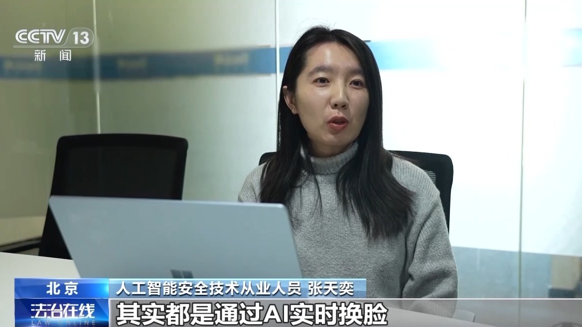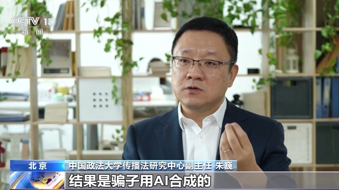 中国政法大学传播法研究中心副主任 朱巍:现在确实已经出现了利用生成式人工智能,搞的这种深度合成的精准诈骗。两人都已经视频通话了,发现对面那个人长相、声音、说话的语气跟另外一个人非常像,结果是骗子用AI合成的,这就导致当事人被骗了。