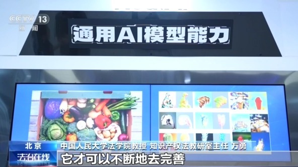 中国人民大学法学院教授、知识产权法教研室主任 万勇:AI在设计的过程当中,或者换句话说机器学习的过程当中,它需要使用大量的享有版权的内容,它才可以不断地去完善。或者换句话说,那么AI使用享有版权的内容构不构成侵权,那么这个也是目前法律上面一个具有争议性的问题。