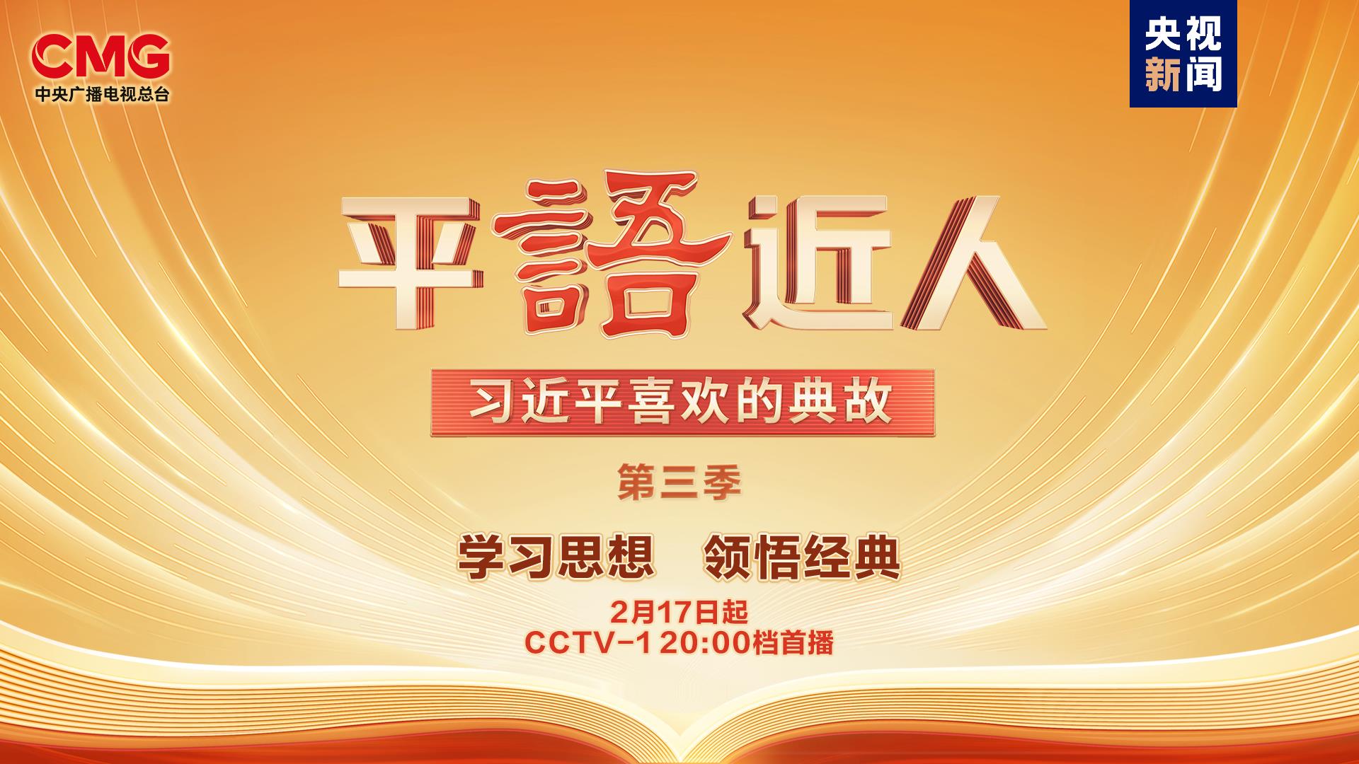 由中共中央宣传部、中央广播电视总台制作的大型全媒体思想理论特别节目《平“语”近人——习近平喜欢的典故》(第三季)将于2月17日起在中央广播电视总台央视综合频道晚八点档首播。央视频、央视新闻客户端、央视网等同步播出。