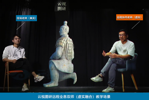云视图研作为全球领先的全息技术服务商,从2019年开始,便开始涉足教育数字化解决方案的研发,经过持续探索实验,创新性地应用全息和5G通信技术为高等院校数字化转型提供3D裸眼全息教室解决方案,打造虚实融合的沉浸式全息教室样板,将产教融合、科教融合落地到实际的教学活动中。