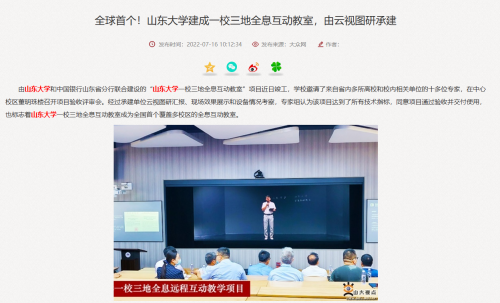 图1 云视图研承建“山东大学一校三地全息互动教室”新闻报道截图