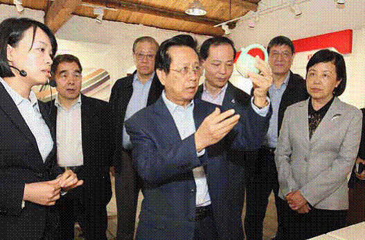 4 月14日至19 日,全国人大常委会副委员长陈昌智率全国人大常委会专利法执法检查组赴浙江开展检查。图为考察宁波和丰创意广场项目。摄影/ 陈建安