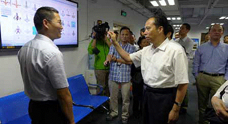 4 月15日至19 日,全国人大常委会副委员长吉炳轩带队赴广东开展专利法执法检查。图为考察中山(灯饰)知识产权快速维权中心。摄影/ 吕献海