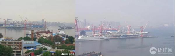 27日,一张拍摄地点为大连造船厂附近的照片在网上流传,照片显示中国海军“辽宁”号航母已经抵达大连旅顺军港,与正在船坞内进行维护的国产航母首次“同框”出现。(观察者网)