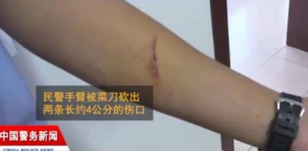 1、男子拿起菜刀砍向妻子 90后民警徒手挡刀!