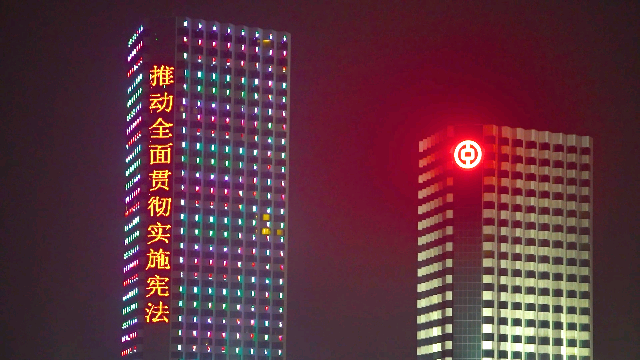 江门各地在本地地标建筑及各类场所电子显示屏,举行一次宪法主题地标亮灯活动,进一步提升宪法宣传的渗透力和覆盖面,同时运用航拍记录精彩瞬间。市普法办在万达广场、蓬江区在主要路口LED屏、开平市在半岛酒店开展点亮地标行动宣传宪法。