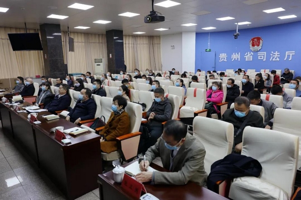 11月29日,中央宣传部、司法部、全国普法办在京举行“习近平法治思想学习报告会”暨2021年全国“宪法宣传周”启动仪式。贵州省通过视频连线在省司法厅及市(州)、县(市、区)司法局设分会场,全省全面启动“宪法宣传周”活动。省法治宣传教育工作领导小组、省委依法治省委守法普法协调小组成员单位相关部门负责同志在分会场参会。