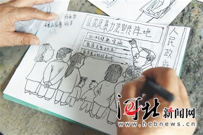 “这部法律内容相当丰富,不仅对家庭暴力零容忍,对家庭暴力受害人的保护措施和援助写得也非常全面……”在画漫画的过程中,师彦文对法律条文已经熟读能诵。“漫画的形式是人们喜闻乐见的,运用漫画的形式进行解读,可以让人们更好地理解内容,并且增加大家的阅读兴趣,达到宣传的效果,使这部法律更加深入人心。”师彦文说。目前,在石家庄市妇女联合会的支持下,法律条文与漫画相结合的《中华人民共和国反家庭暴力法》漫画宣传手册已经印刷完毕。他还自费印制了40块展板,准备到农村地区进行宣传《中华人民共和国反家庭暴力法》。