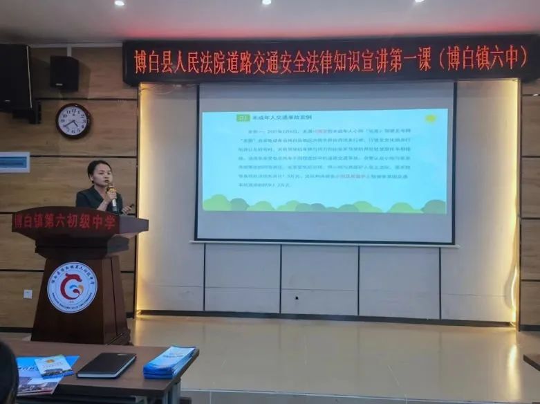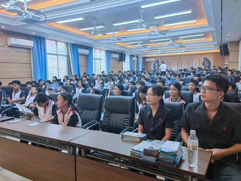 金秋九月迎来了一年一度的开学季。为进一步增强学生们的道路交通安全意识和安全防范能力,让他们开心上学,安心回家,9月14日下午,博白县人民法院综合审判庭干警前往博白县博白镇第六初级中学,对该校100多名初一学生开展道路交通安全法律知识宣讲,与他们共赴一场法治之约。