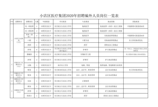 小店区医疗集团2020年招聘编外人员岗位一览表