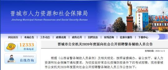 晋城市公安局制定公开招聘实施方案,经晋城市人力资源和社会保障局审核备案后,2020年11月2日在晋城市人力资源和社会保障局网站发布公告。