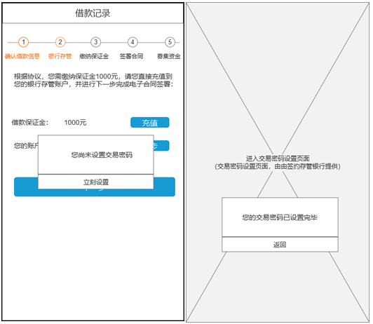 进入该页面时,用户如果没有进行银行存管,点击立即出借,会出现提示进行银行存管设置的弹窗。