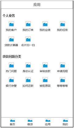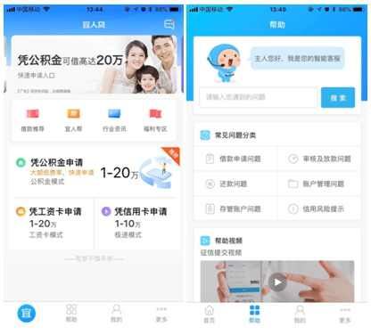 以宜人贷为例,App分为首页/帮助/我的/更多4个模块,具体如下: