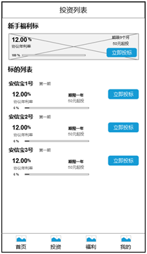 福利的页面可以放置一些商场/游戏/加息标专区/活动专区等等信息位,我的页面放置个人信息设置,投资标的数据等等。