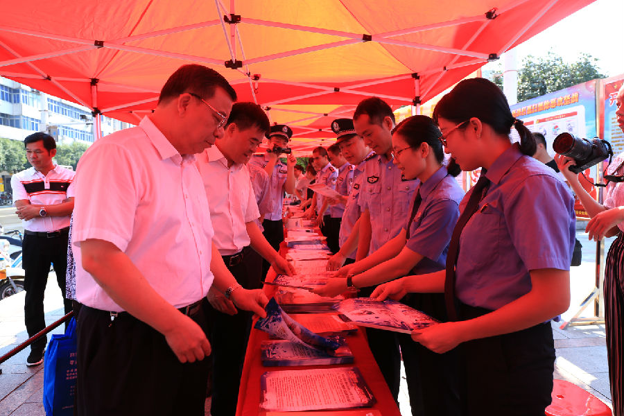 为提高人民群众对扫黑除恶专项斗争的知晓度和参与率,近日,广西壮族自治区贺州市检察院党组副书记、副检察长刘建一行7人参加“坚决扫除黑恶势力,切实增强人民群众获得感幸福感安全感”集中宣传活动,积极营造扫黑除恶“全民动员、人人参与”的良好氛围。