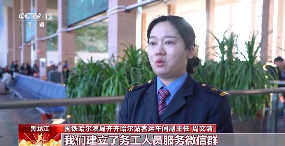 国铁哈尔滨局齐齐哈尔站客运车间副主任 周文清:我们建立了务工人员服务微信群,及时了解了他们的出行时间、人数和批次,随时根据需求进行协调,从初五开始,有11批务工人员进行返岗。