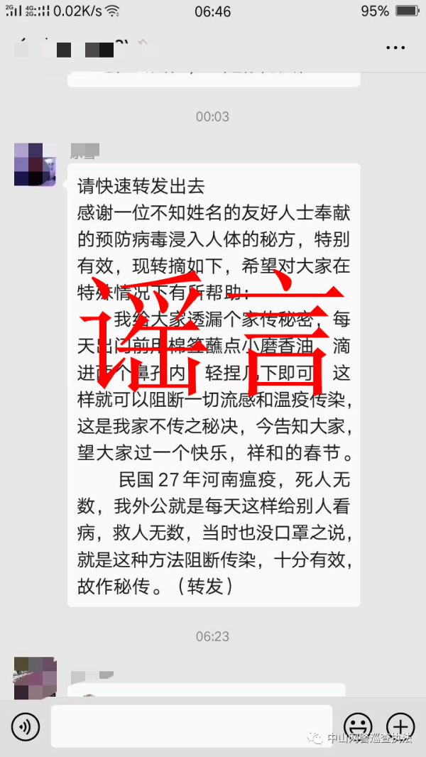 谣言二:香油滴鼻孔能阻断流感和瘟疫